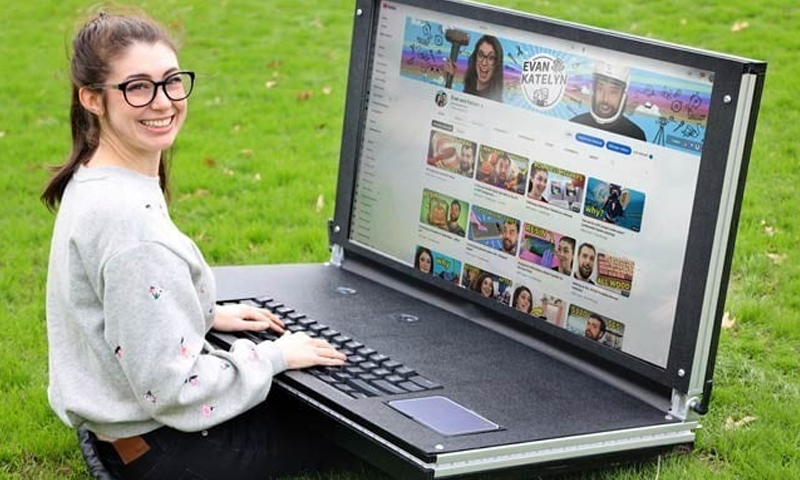لیپ ٹاپ کا وزن تقریباً 45 کلو گرام اور اسکرین 43 انچ کی ہے۔