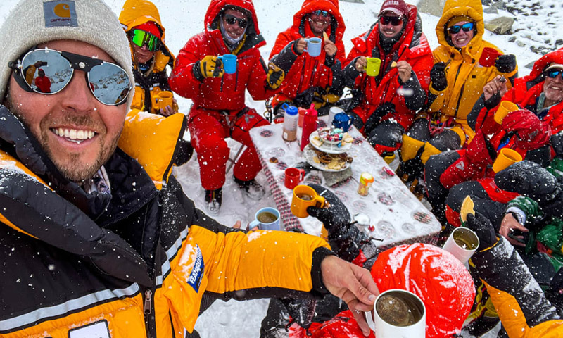 ہیوز نے ماؤنٹ ایورسٹ پر سطح سمندر سے 21 ہزار 312 فٹ کی بلندی پر چائے سے لطف اٹھایا