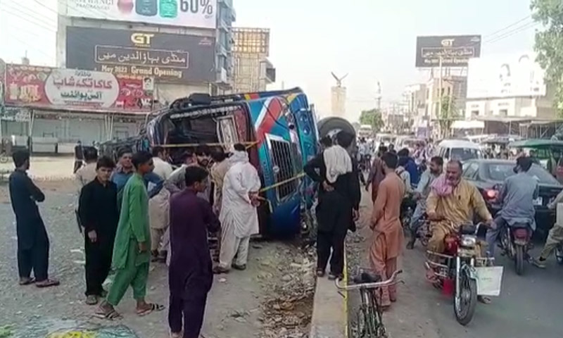 موٹرسائیکل سوار کو بچاتے ہوئےبس الٹ گئی،3مسافر جاں بحق