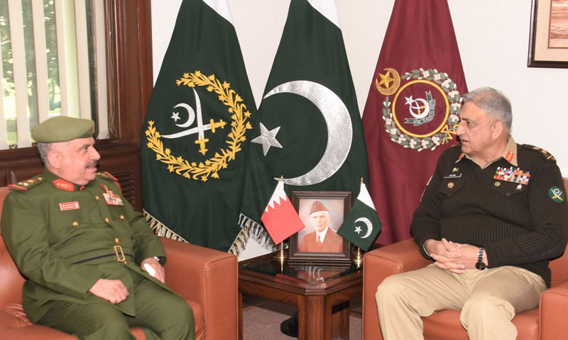 آرمی چیف جنرل قمر جاوید باجوہ سے بحرین کے چیف آف اسٹاف نیشنل گارڈ نے ملاقات کی۔