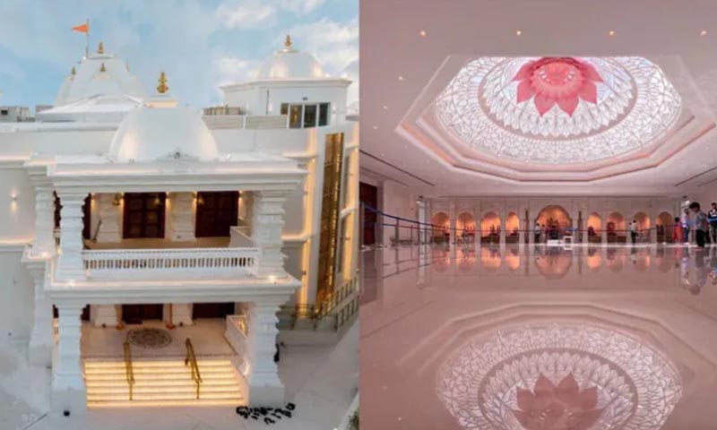 نوتعمیر شدہ ہندو مندر کا افتتاح متحدہ عرب امارات کے وزیر برائے ہم آہنگی اور بقائے باہمی شیخ نہیان بن مبارک النہیان نے چراغ جلا کر کیا۔