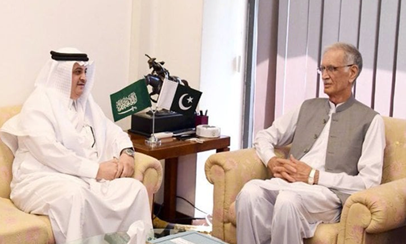 پرویز خٹک کی سعودی عرب کے سفیر نواف المالکی سے ملاقات کے دوران گفتگو۔