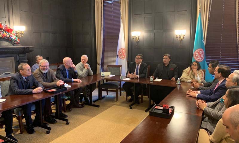 بلاول بھٹو زرداری نے یونیورسٹی کے ڈین پروفیسر عادل نجم کی جانب سے منعقدہ تقریب میں شرکت کی۔