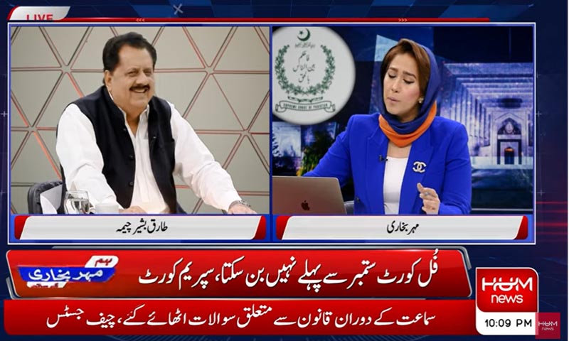 عمران خان چودھری پرویزالہیٰ کو گالی کے بغیر بلاتا نہیں تھا، چودھری شجاعت نے صلح کے لیے رابطہ کیا ہے، طارق بشیر چیمہ کی پروگرام ’ہم مہر بخاری کے ساتھ‘ میں گفتگو