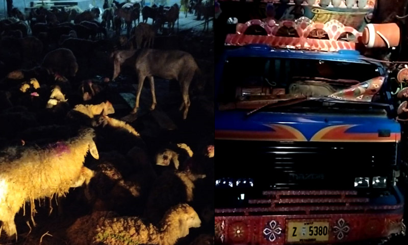 قربانی کے جانوروں سے بھرا ٹرک الٹنے سے 17 بکرے ہلاک