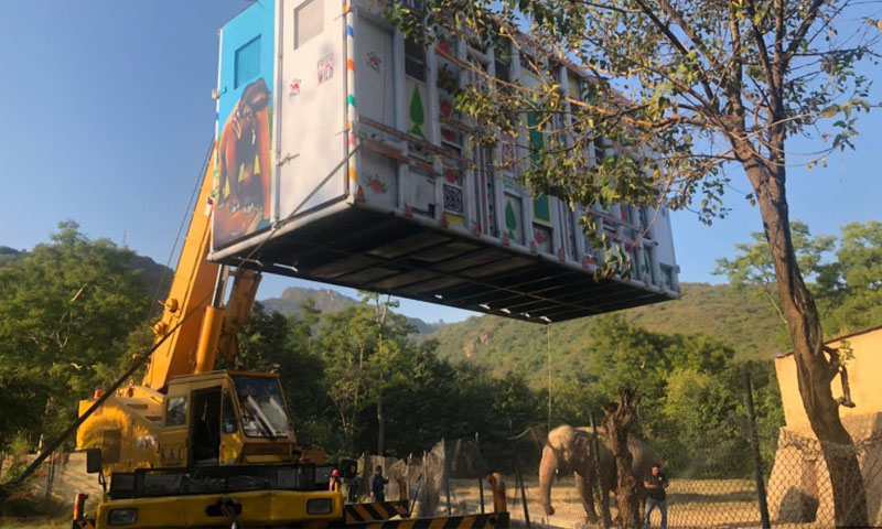 کاون کیلئے تیار کردہ خصوصی کیبن چڑیا گھر پہنچادیا گیا، جس میں ہاتھی کو رہنے کی تربیت دی جائے گی