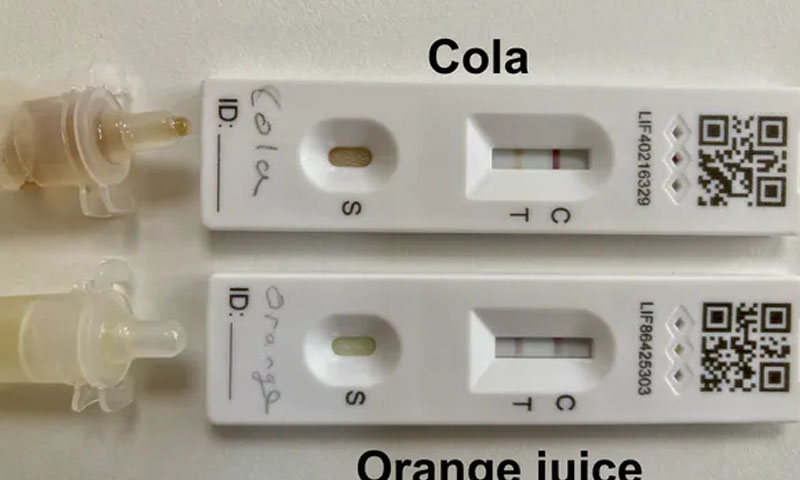 برطانوی طلبہ نے کینو و لیمن کا جوس کورونا ٹیسٹ کٹ پہ ڈال کر مثبت رپورٹ حاصل کرلی ہے۔