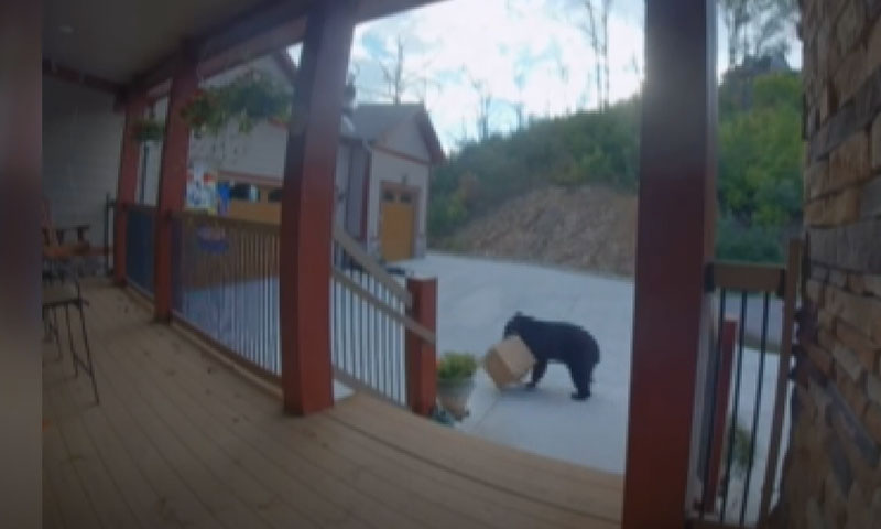 ریچھ گھر کے باہر دروازے پر رکھا 15 کلو وزنی پارسل لے کر فرار ہو گیا۔