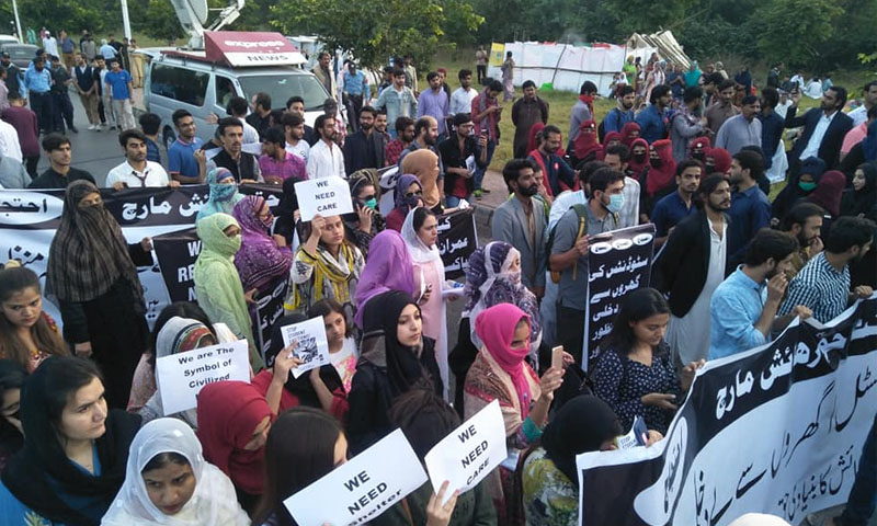 اسلام آباد کی رہائشی علاقوں سے بےدخل کئے گئے یونیورسٹی طلبہ و طالبات کا احتجاج