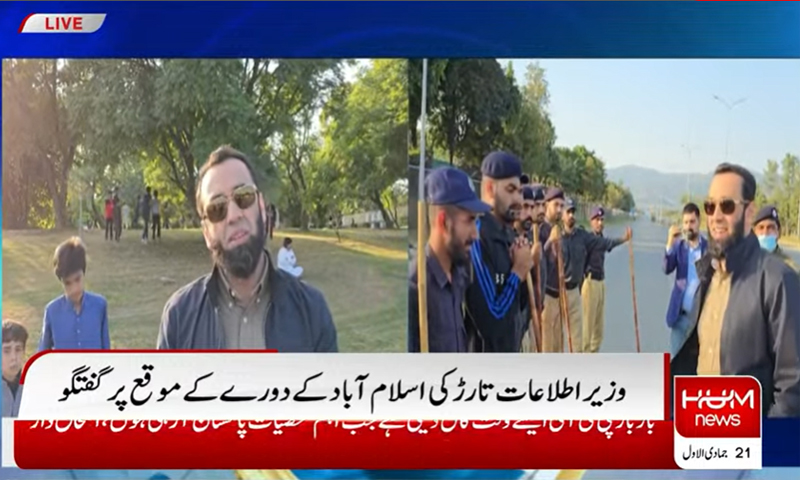 وفاقی وزیراطلاعات کا اسلام آباد کے مختلف علاقوں کا دورہ ،صورتحال کا جائزہ ، پولیس اہلکاروں سے ملاقات