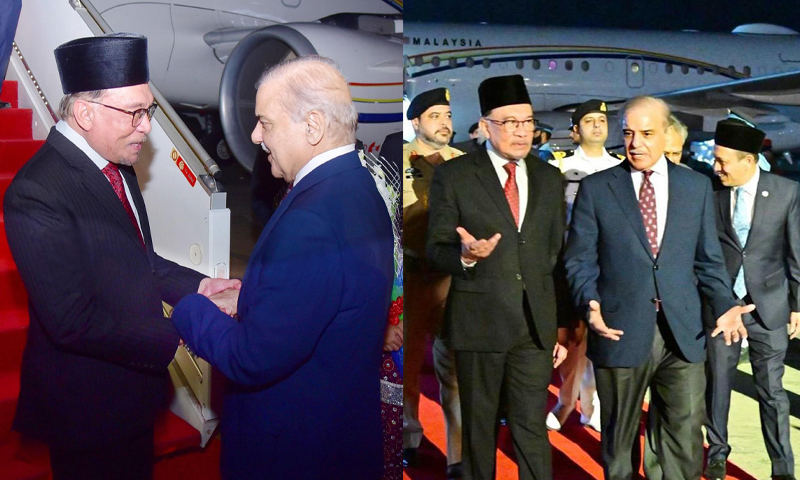 وزیراعظم شہبازشریف نے کابینہ ارکان کے ہمراہ انور ابراہیم کا استقبال کیا